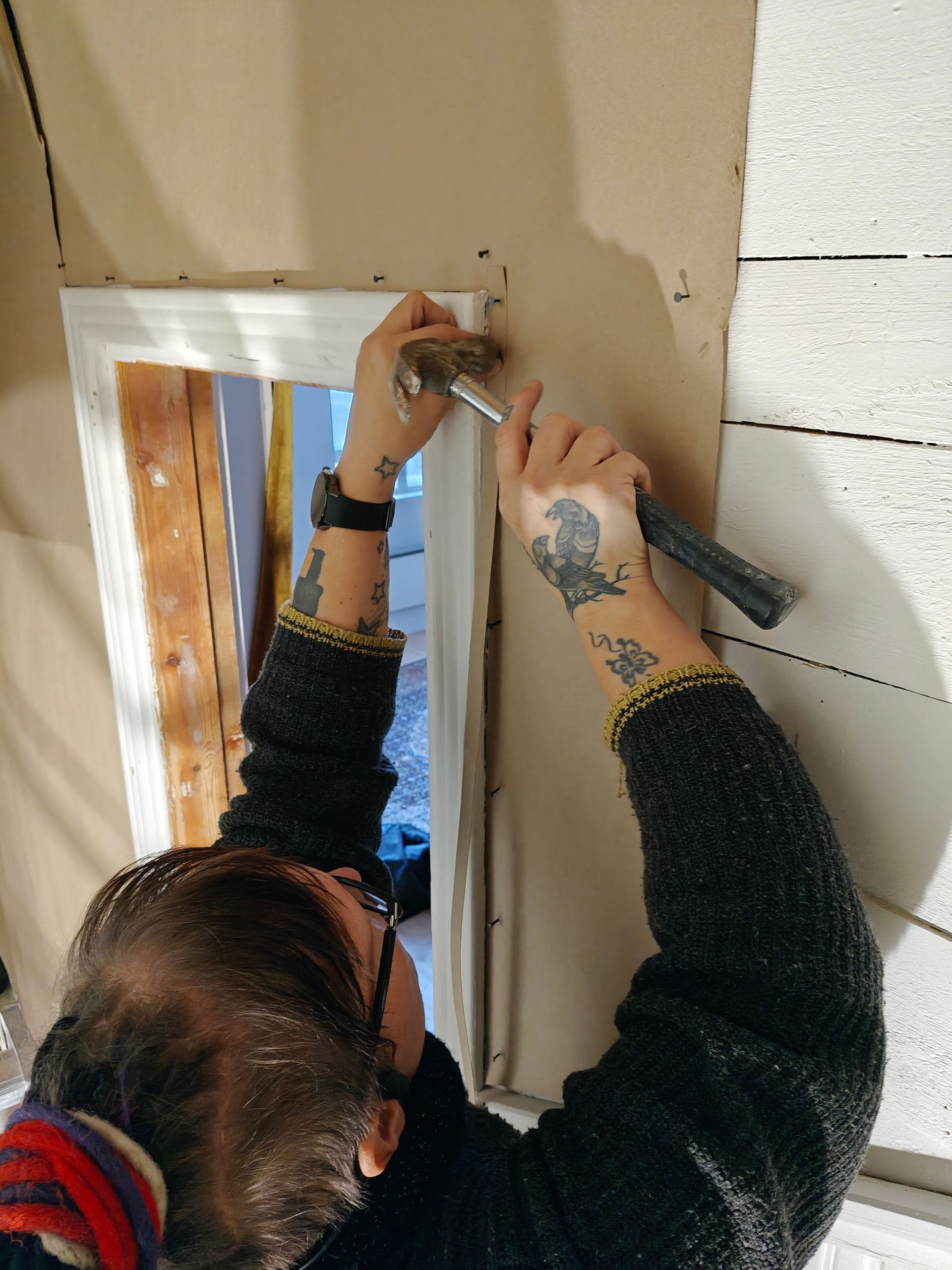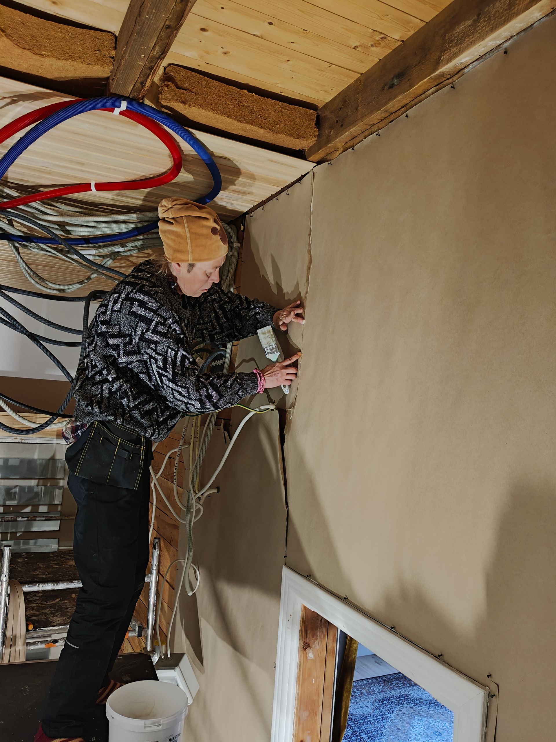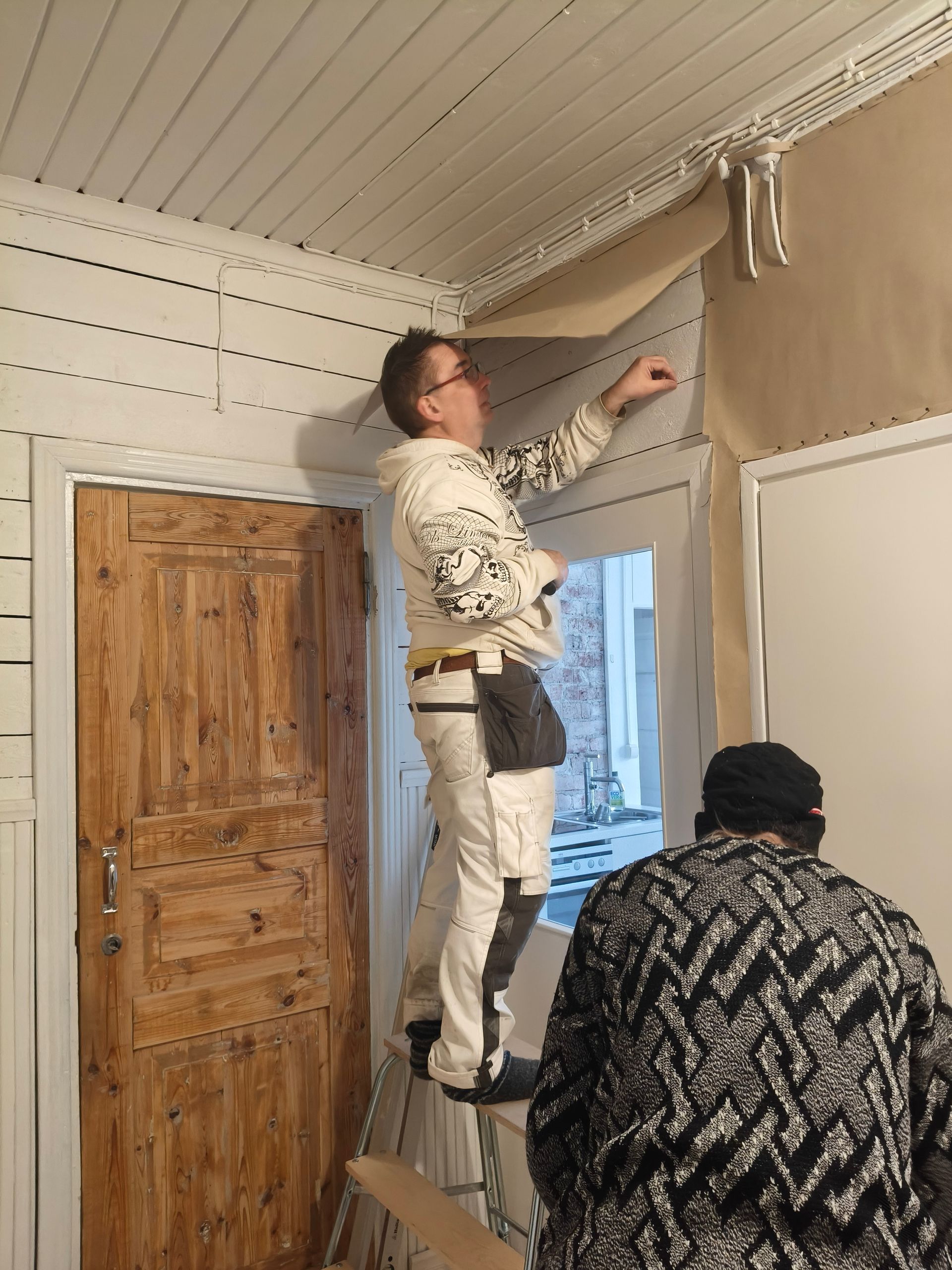Harjoitteluvaiheessa pahvitettavana oli useita seiniä, niin että kaikki saivat tarvittavan harjoituksen näyttöä varten. Kaikki harjoitteluvaiheen seinät onnistuivat hienosti.